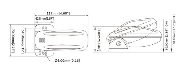 Розмір монтажного майданчика складає 70х43 мм.